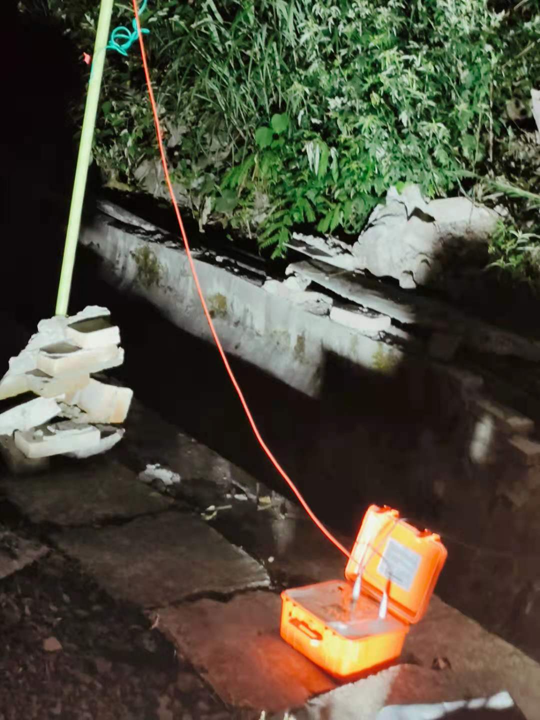 中车集团工作人员解开主芯线后,王工就开始用KD305绝缘电阻测试仪,进行绝缘测试,第一条外护套绝缘为19.6KΩ,第二条绝缘为36.8KΩ,第三条为0Ω。马上改为直接高压脉冲,进行故障精确定位,因为前期耽误不少时间,时间不够用。直接用KD215草莓短视频下载定位仪开始定位。5分钟左右,笫一条屏蔽层出现了放电火花,再进行第二条定位,直到三条故障定位完后不超过一小时,故障点5个。这次突击屏蔽层故障己全部找出,找出故障后,两班修复人员抓紧修复,在一个小时左右修复完成,并恢复。