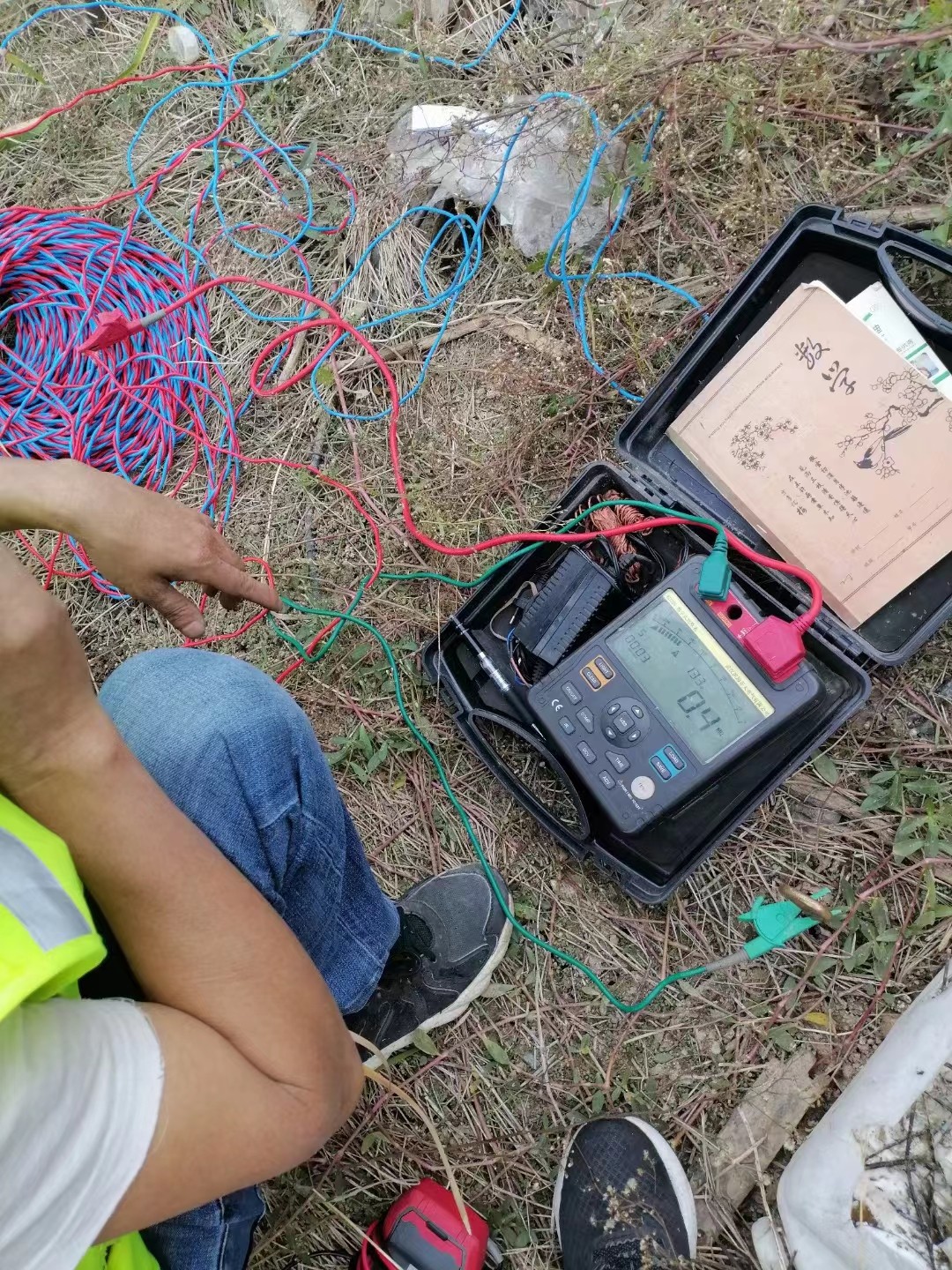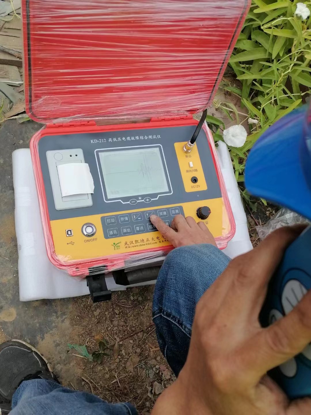 知道这种情况后开始做检测,首先用KD305绝缘电阻测试仪,用5000V电压等级进行测量,测出A相对地绝缘阻值为0.7MΩ,测出凯线对地阻值300GΩ得出这结果后,判断这是一起主绝缘接地故障。接着用KD2124电缆路径综合测试仪,寻找路径。这条电缆顺着路边一路埋过去,一段用顶管穿过去的,另一段走的电缆沟。