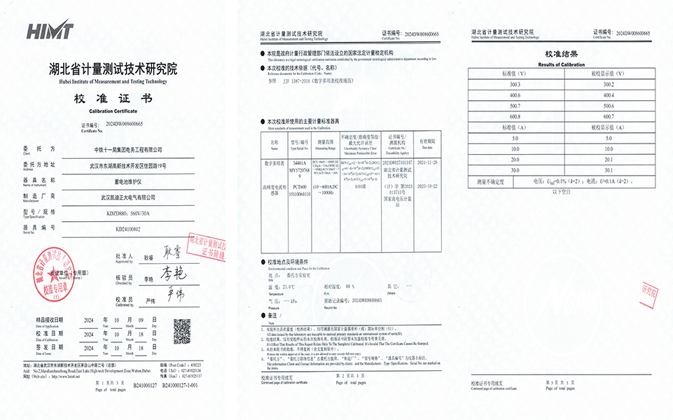 KDZD880,560V/30A便携式智能蓄电池维护仪在交付前,顺利通过了湖北省计量测试技术研究院的严格检测。此次检测严格遵循JJF 1587-2016《数字多用表校准规范》,对设备的测量精度、稳定性、安全性等关键指标进行了全面评估。结果显示KDZD880的各项性能指标均达到标准要求,为用户的信赖与选择提供了坚实的数据支撑。