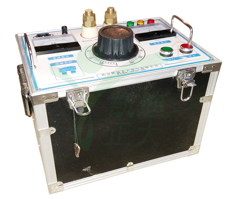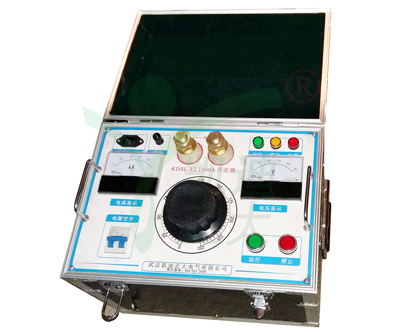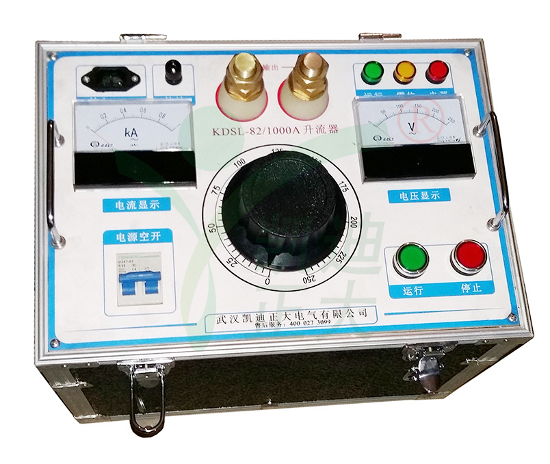KDSL-82 系列大电流发生器是一种作为检验用的电流源,大电流试验器采用ARM芯片控制输出工艺和大容量的环形变压器,并且配有0.2级机械表计表,同时显示一、二次电流、变比和秒表接点(或电位)的动作时间。外配铝合金机箱,PC面板,具有外形美观,输出容量大,体积小,重量轻等特点。主要适用于电力系统的CT变比,接触电阻等需要大电流试验的场合。对电器作热稳定、动稳定试验时低压大电流电源,如空气断路器、接触器、继电器的温升试验及脱扣等。