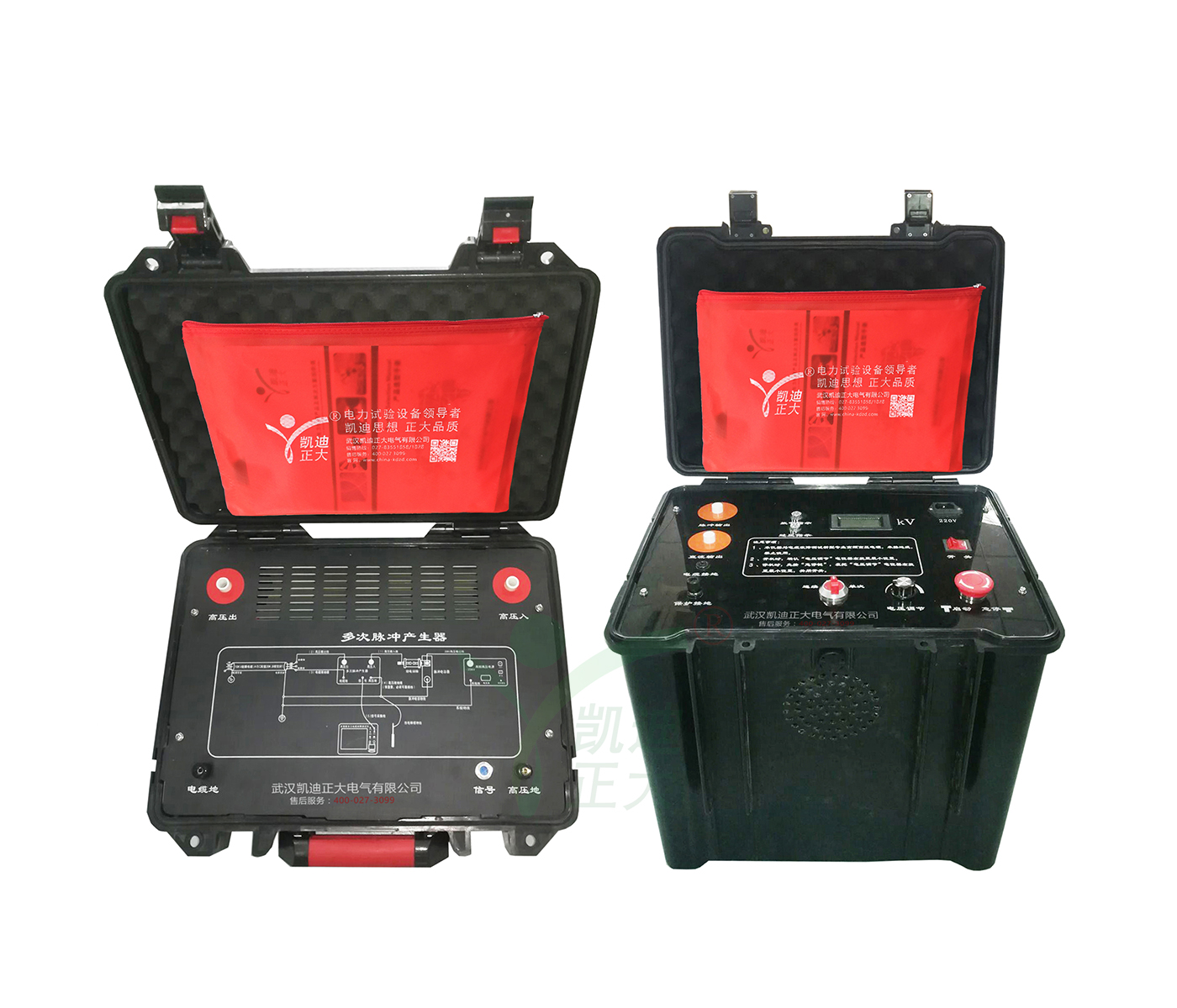 ◆ 独特的多次脉冲法产生器设计,现场无须倒线即可完成三种方法测试,且一次放电,可得十次低压短路脉冲波形,大大降低了大振荡的干扰,多次脉冲产生器体积小,重量仅为5KG,真正实现全套设备轻便化。