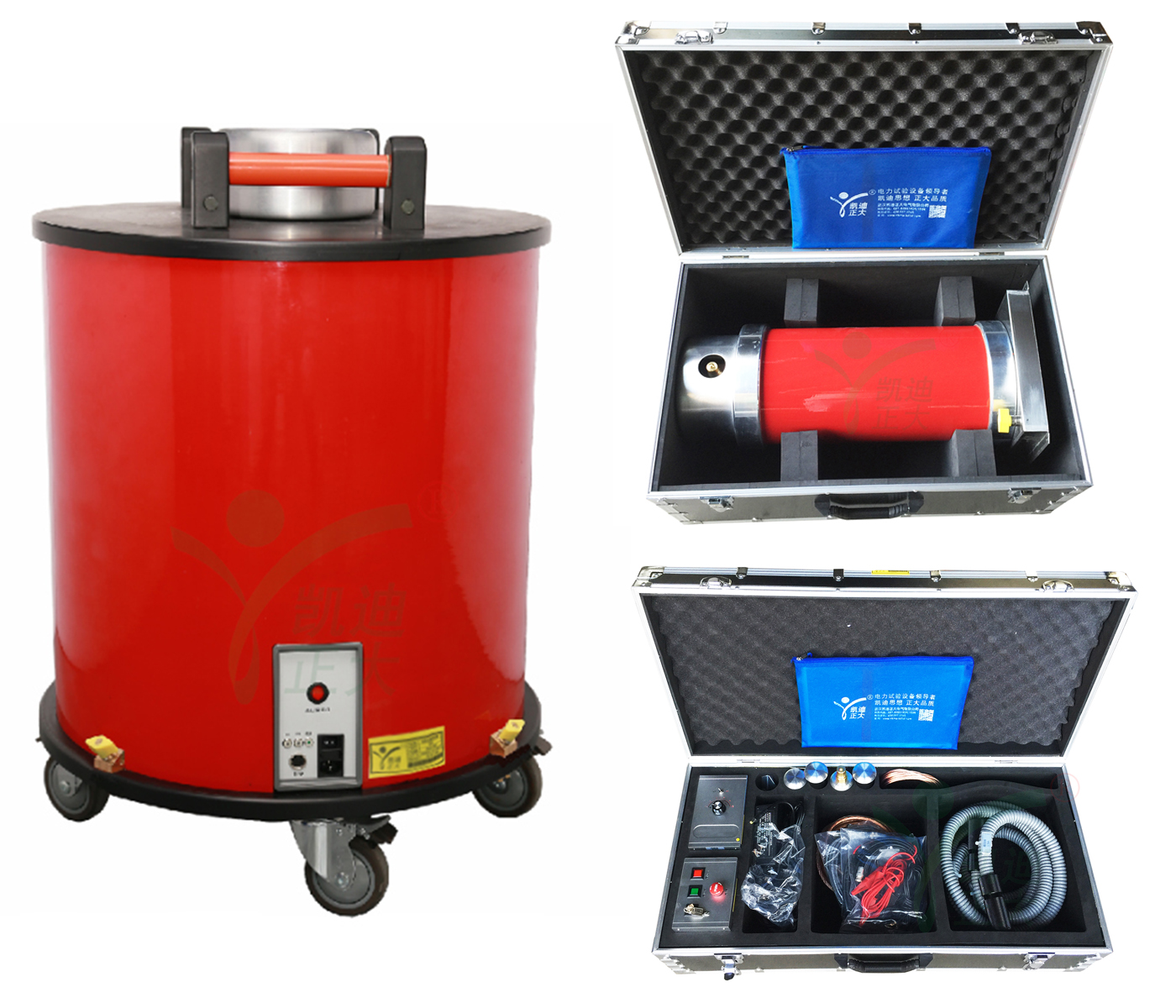 KDDAC-30 电缆振荡波局放测试系统是一种用于电缆现场检测与状态诊断的新型技术工具,具有简单实用、体积小、便于运输、可在交流电压条件下进行非破坏性试验、绝缘性能检测与评估手段多样化等特点。采用局放交流电压(Damped AC Voltage,简称DAC)耐压试验与局放检测相结合的方式,DAC电压测试和分析测试可对安装质量好坏进行可靠检查,同事也可检测因不当敷设造成的故障,以及因老化引起的零配件故障或电缆绝缘性能降低。此外,借助介质损耗现场测量技术,介质损耗tg δ的估算基于DAC电压自身阻尼因数的确定,可进一步实现高压电缆绝缘老化程度的状态评估。