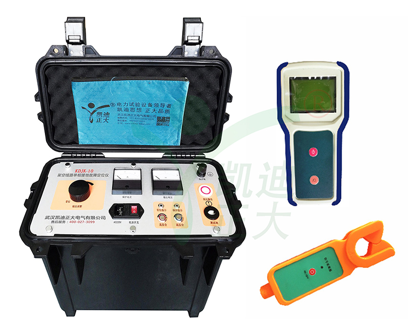 KDJK-10 架空线路单相接地故障定位仪是一套便携设备,可进行多条线路的故障定位。整套设备由发射机、传感器、接收机及附件组成。在故障线路停运后,由发射机向线路施加超低频高压信号使故障重现,在线路沿途用绝缘杆将传感器挂在线路上检测信号,并通过无线方式向地面上的接收机传输数据,接收机显示测量结果。在故障点前,电流持续存在,故障点后,电流消失。可先进行粗略分段,再精确定点,从而快速确定故障位置。