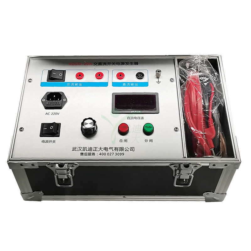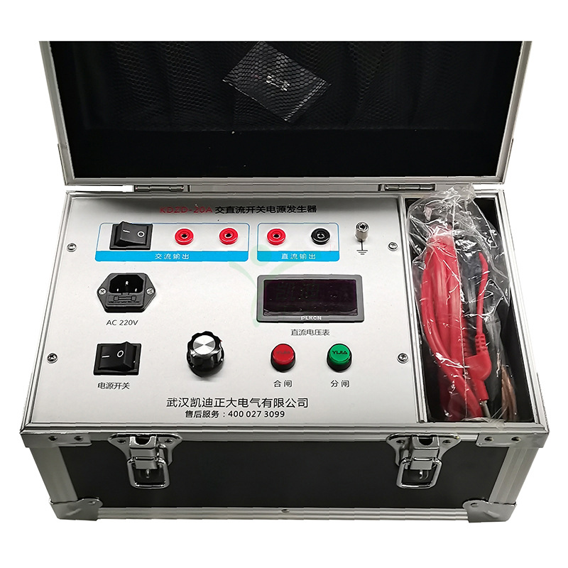 KDZD-20A 交直流开关电源发生器亦称高压开关检测操作电源,是为对高压断路器及其操作机构进行检测维修而设计的专用电源,具有电压可调、操作简单、体积小、携带方便等优点,是高压开关检修不可缺少的检测工具。