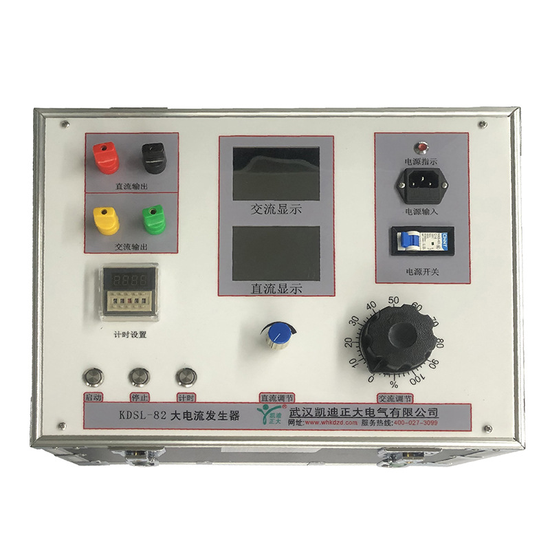 KDSL-82-1000A大电流发生器(简称升流器),我公司自行研制开发的测试设备,它集国内外同类产品的优点于一身,采用数控技术,抗干扰能力强,和上一代升流器相比,由于采用低功耗、大容量的自藕调压器和高导磁率铁芯制作的变流器,具有输出功率大,体积小,重量轻等优点。主要用于热继电器,电动机保护器,接触器,断器器,空气开关,开关柜,断路器,保护屏校验;用于一次母线保护及各种电流互感器的变比等测试项目,被广泛用于电力、铁路、石化、冶金和矿山等企业的科研、生产和电气试验现场。