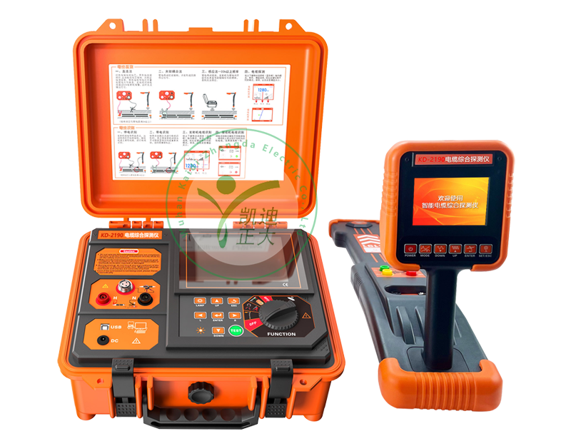 KD-2190智能电缆综合探测仪是一款综合性能很强的路径探测仪器。具有管线路径探测、电缆识别、管线接地故障查找、GPS测绘等多种功能。仪器由发射机、发射电流钳、接收机、接收柔性电流钳、连接测试线、听诊器、A字架(选配件)、测绘APP(选配)、RTK(选配)等组成。