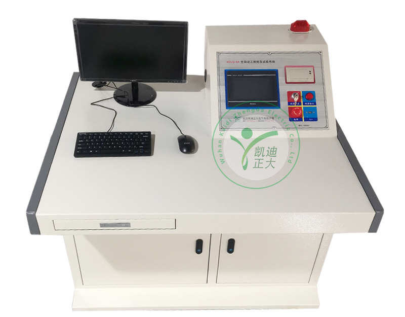 KDJS-8A全自动工频耐压试验系统(10kVA全自动操作台),是根据国家行业试验标准而设计的试验设备,其安全可靠、功能强、使用方便、维护简单。主要用于对各种电器产品、电气元件、绝缘材料等进行规定电压下的绝缘强度试验,以考核产品的绝缘水平,发现被试品的绝缘缺陷,衡量过电压的能力。
