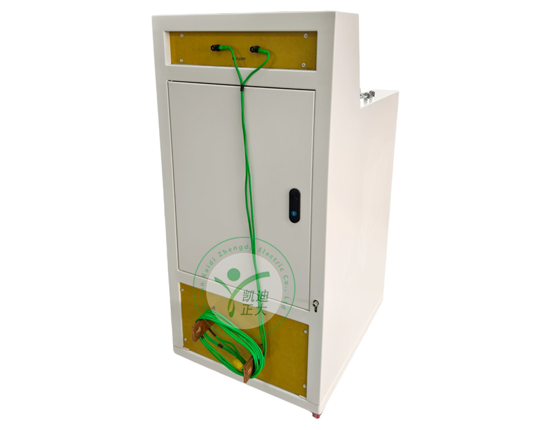 KDSL-82 2000A大电流发生器(升流器)属于可移动式结构,它由仪表指示灯板和操作面板组成。仪表指示灯板分大、小量程的选择开关(钮子开关),绿色指示灯指的是电源信号,红色指示灯指的是工作信号。操作面板由启动按钮(绿色)、停止按钮(红色)以及工作系统组成。具有结构合理、外形美观、重量轻且移动方便等特点。