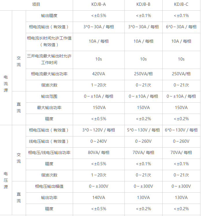 8、可直接输出交流电压、交流电流、直流电压、直流电流,可变幅值、相位、频率, 2 ~ 20次谐波