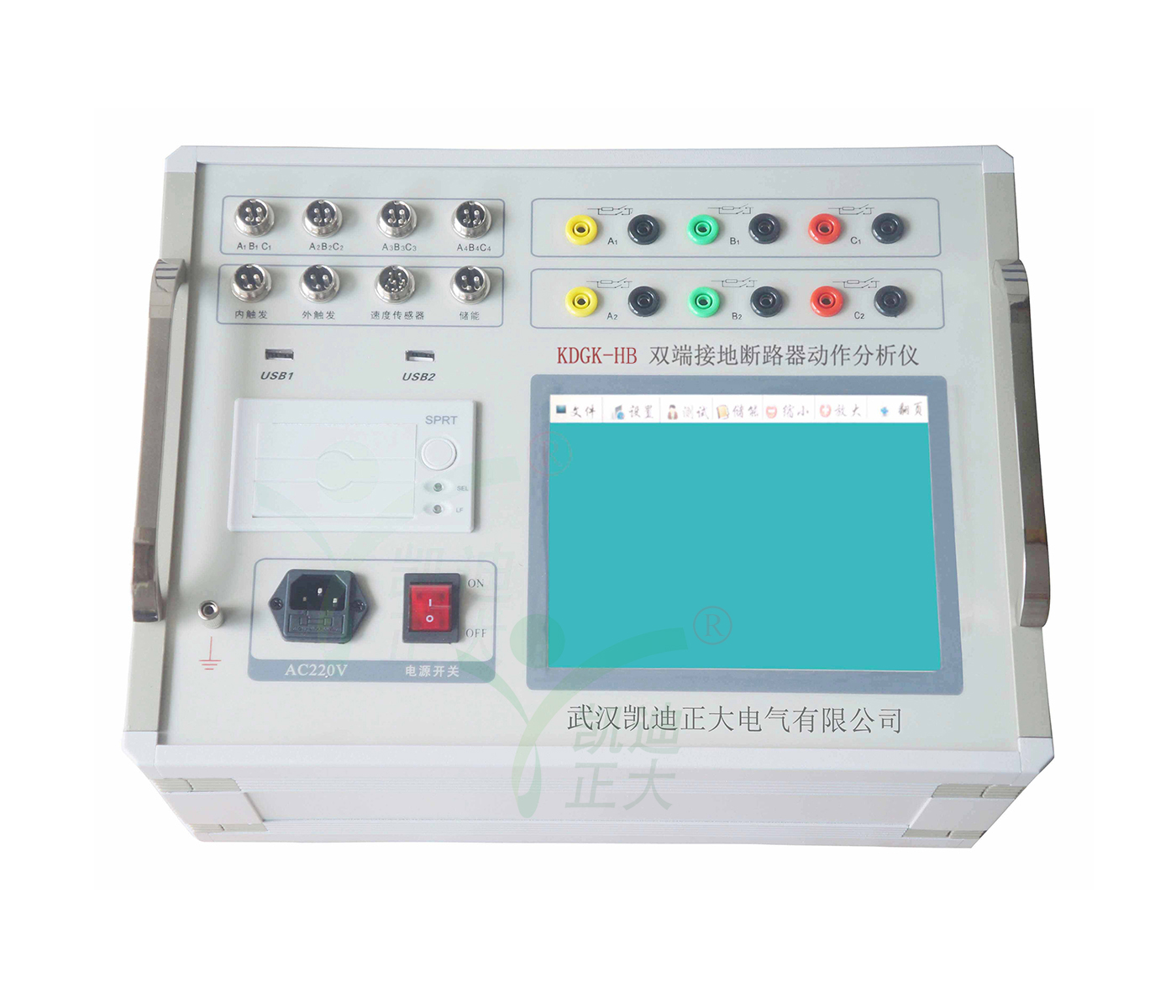 KDGK-HB 双端接地断路器动作分析仪即(高压开关机械特性测试仪)是依据《高压交流断路器》GB1984-2003为设计蓝本,参照中华人民共和国电力行业标准《高电压测试设备通用技术条件》第3部分,DL/T846.3-2004为设计依据,为进行各类断路器动态分析提供了方便,能够准确地测量出各种电压等级的少油、多油、真空、六氟化硫等高压断路器的机械动特性参数。高压断路器在电力系统中担负着控制和保护的双重任务,其性能的优劣直接关系到电力系统的安全运行。机械特性参数是判断断路器性能的重要参数之一。