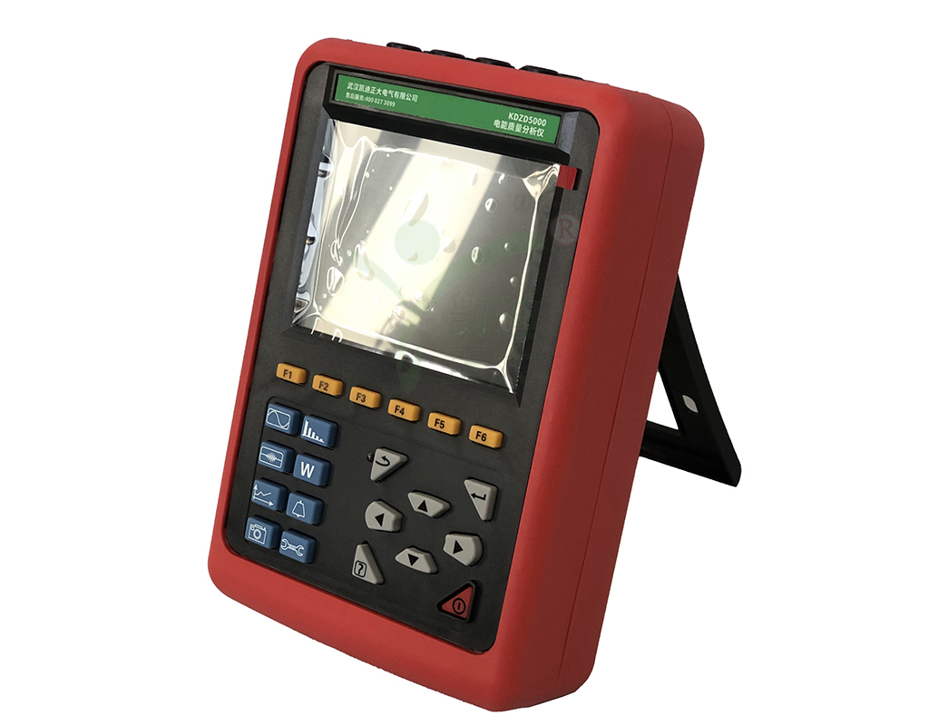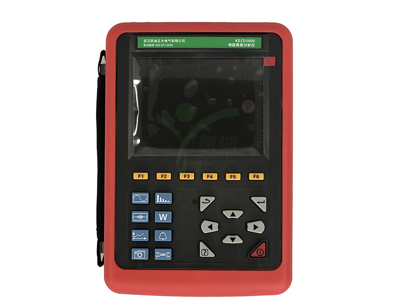 KDZD5000电能质量分析仪是我公司精心研制的现场测试的三相、多功能、智能化、人机操作简洁的综合型测试仪器。具有容易使用,超大液晶彩屏显示,高分辨率,中英文双语操作界面,防振结构外壳等特点。可同时测量4路电流(ABC三相及中性线电流),4路电压(ABC三相电压及中性线对地电压)、电流电压的峰值、一段时间内的最大最小值、三相不平衡度、短时电压闪变、变压器K因数、有功功率、无功功率、视在功率、功率因数、位移功率因数、有功电能、无功电能、视在电能、谐波比、总谐波失真度等;显示电流电压的实时波形、相量图、谐波比柱形图;动态捕捉电压电流瞬时变化,监测启动电流,监测各电力参数并生成告警列表,长时间记录测试数据并生成趋势曲线图等功能。