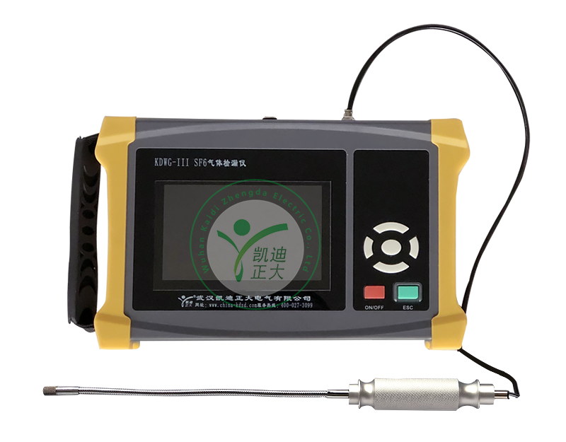 KDWG-III高精度SF6气体检漏仪(手持式)是测量SF6气体泄漏的新产品,采用进口传感器,它具有灵敏度高、稳定性好、响应速度快、操作简便、移动范围大,可迅速、准确的定性和定量检测SF6断路器和GIS的泄漏点及年泄漏率。