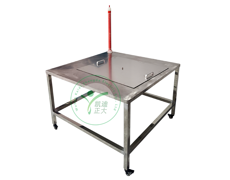 本装置依据 DL/T976-2017 电力行业标准研发,适用于绝缘衣、绝缘裤、绝缘披肩、绝缘套袖、绝缘毯等防护用品的工频耐压测试,支持 0 至 50kV 多电压等级检测 。采用不锈钢框架, 电极由不锈钢材质制成。