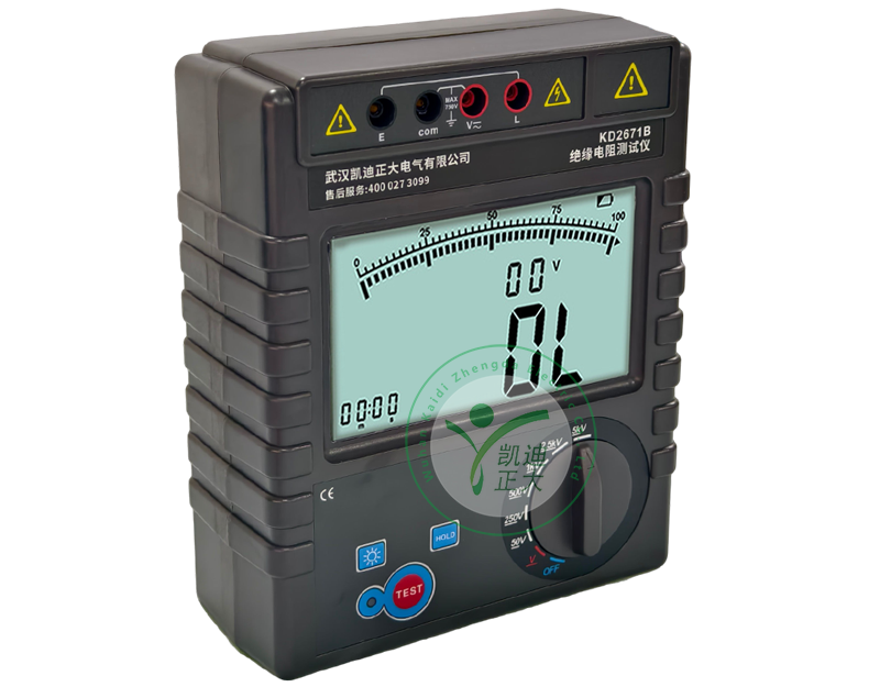 绝缘电阻测试仪又名兆欧表,用于绝缘电阻的测试。本仪表是一款高性能数字式仪表,具有LCD大屏幕带背光显示、数据保持、自动放电、自动关机等功能。仪表具有测试计时、电压监测功能,回路电压大于36V时,仪表将禁止测试以保护被测物及人员安全。