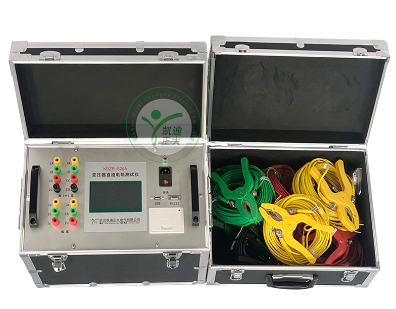 变压器直流电阻的测量是变压器制造中半成品、成品出厂试验、安装、交接试验及电力部门预防性试验项目,能有效发现变压器线圈的选材、焊接、连接部位松动、缺股、断线等制造缺陷和运行后存在的隐患。KDZRS-20A直流电阻测试仪是测量变压器、互感器、发电机、电动机绕组直流电阻的快速测试设备,适用于大容量星接变压器三相同时测量及三相五柱和低压角接变压器的助磁测量,节省时间,提高检修效率。