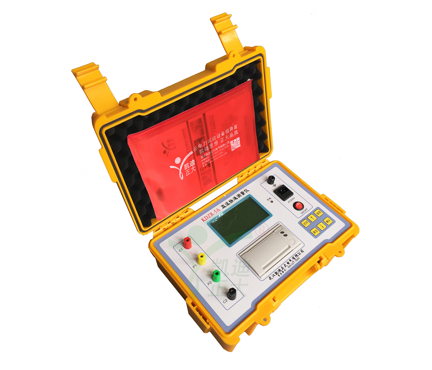 KDZR-5A 变压器直流电阻测试仪界面设计采用微机控制,大屏幕背光汉字液晶屏显示,操作简便、显示清晰人机交互界面友好,测量过程及仪器工作状态提示明确充分,不需操作人员记忆过多的规程;采用电流源线性补偿技术,测试稳定、测量精度高、速度快,提高了测量效率,减轻了操作人员的工作强度。技术上采用“四端”测量,消除引线电阻与接触引起的测量误差。有过压防护功能,能防反电动势冲击。面板式打印机可快速打印测量结果(选用)。体积小、重量轻、携带方便。