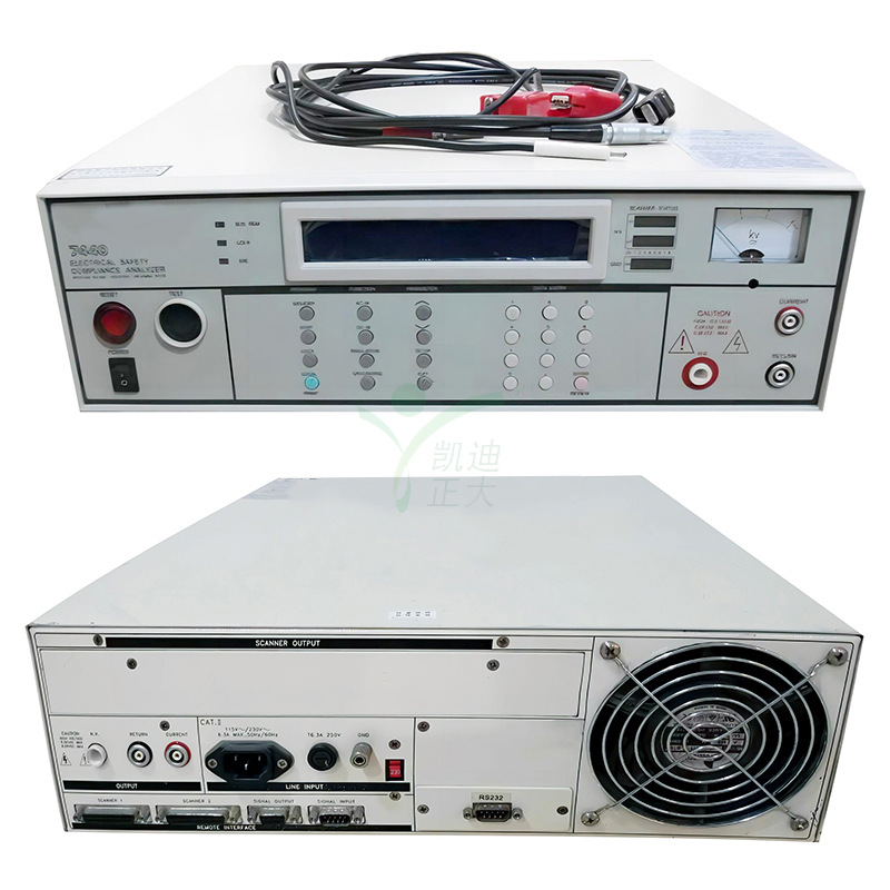 KD7440 系列程控耐压测试仪均采用高速 MCU 和大规模数字电路设计的高性能的安规测试仪,其输出电压的大小、输出电压的上升、下降、输出电压的频率由MCU 控 制,能实时 显示击穿电流值和电压值,并具有软体校准功能,配备 PLC 接口、RS232C、RS485、USB device、 USB Host接口、可方便与计算机或 PLC 组成综合测试系统。 能够快速、准确地对家用电器、 仪器仪表、照明电器、电动电热器具、计算机、信息类整机进行安规综合测量。