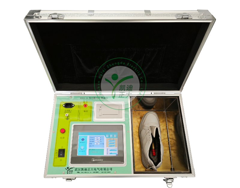 KDZR-ZL导电鞋直流电阻试验仪是用于测量电力安全工器具导电鞋的电阻。主要为了发现导电鞋的隐患而进行的预防性试验。遵照《GBT 6568-2008带电作业用屏蔽服装》、《DLT 976-2017 带电作业工具、装置和设备预防性试验规程》要求,导电鞋的的电阻不大于500Ω。不仅制造厂在出厂时须按这一标准检验,合格后才能出厂。在实际使用时也须按这一规程定期检验,合格后才能穿用。